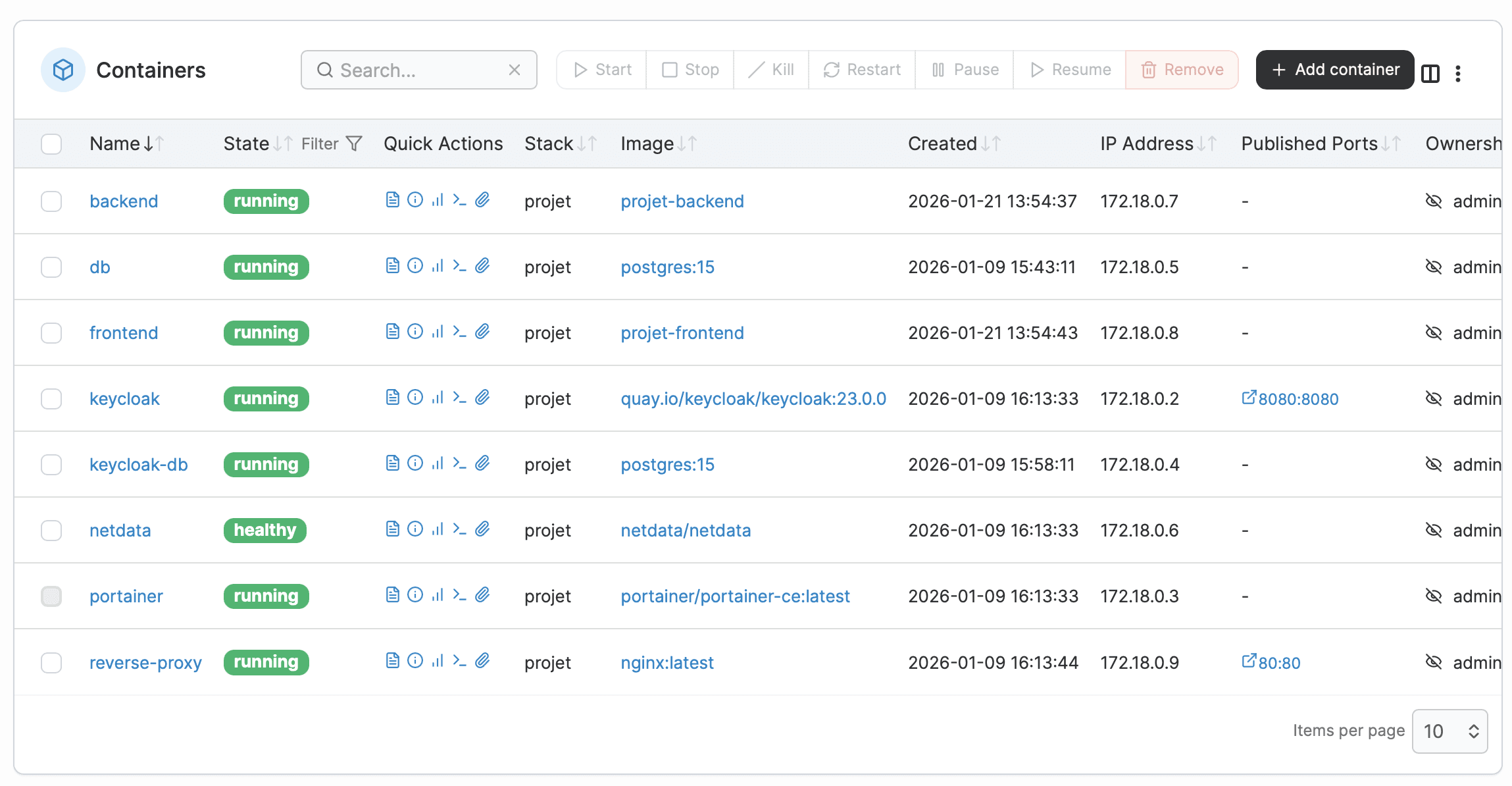 Gestion des conteneurs via Portainer (Interface WEB) et supervision Netdata